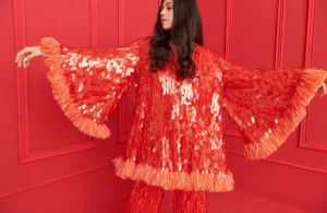 The Ayla Dress is a firework in motion. Covered in oversized red sequins and finished with tonal fringe at the cuffs and hem, this flared mini is pure drama and delight