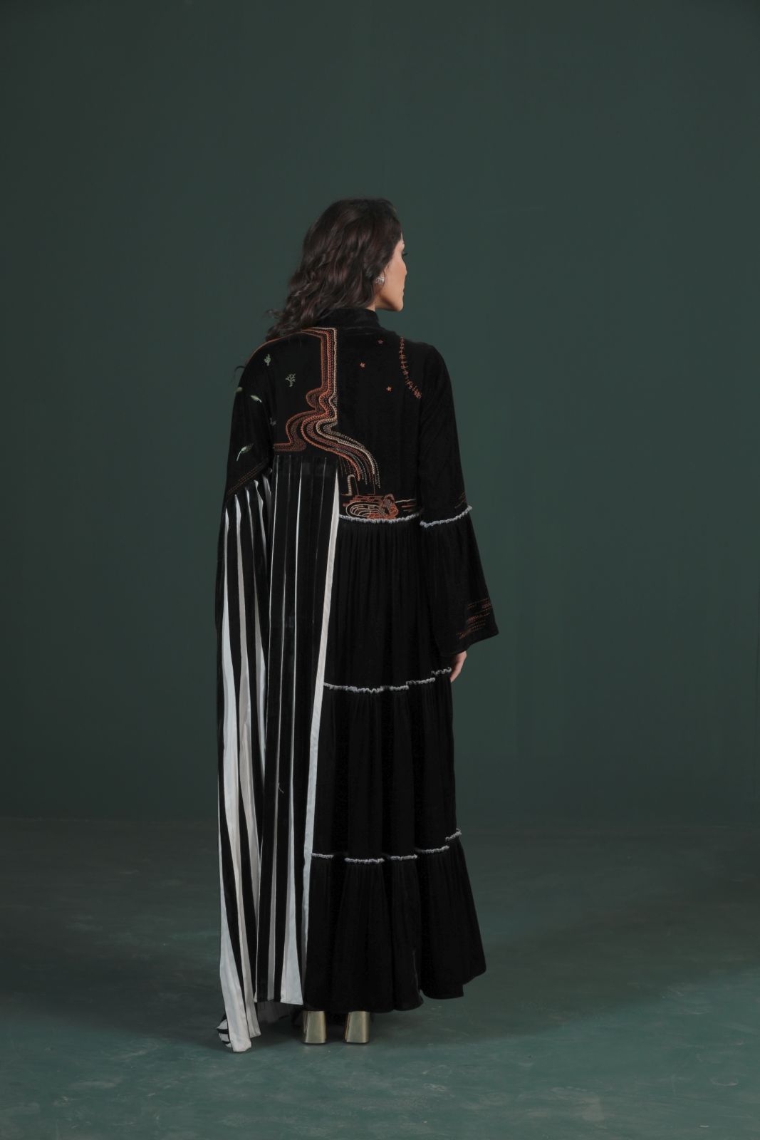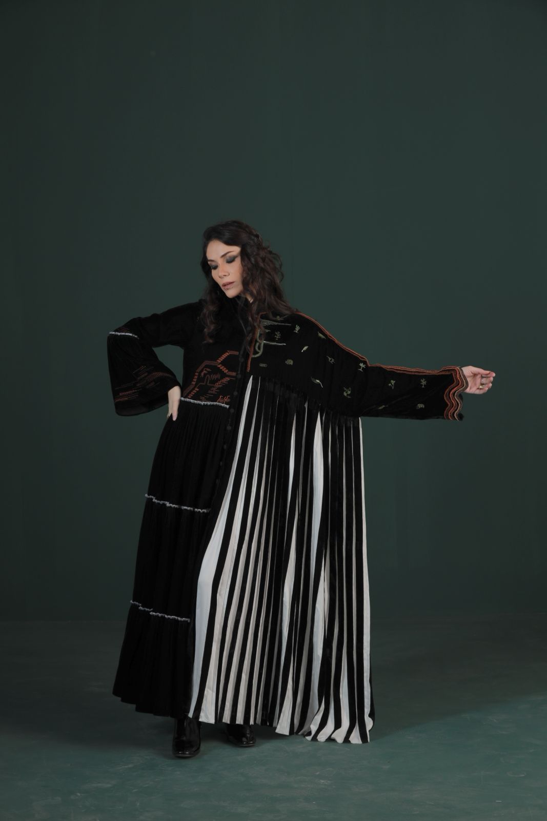 Has a wide flowing cut and details appear to include some subtle embroidery near the top.