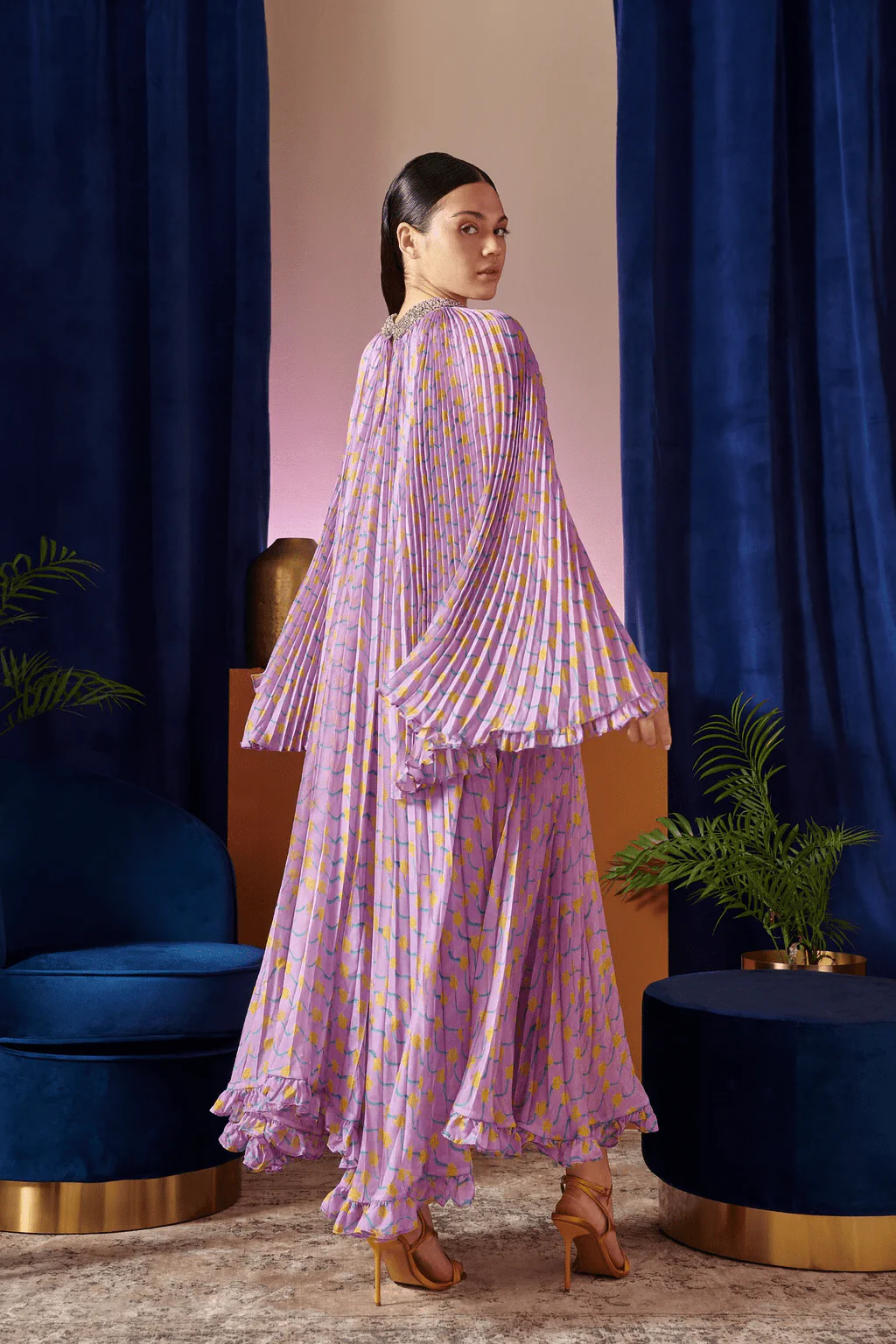 A cosmic swirl of color and movement, the Earth Dress stuns with its pleated silhouette that flows with every step.