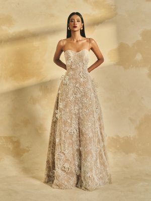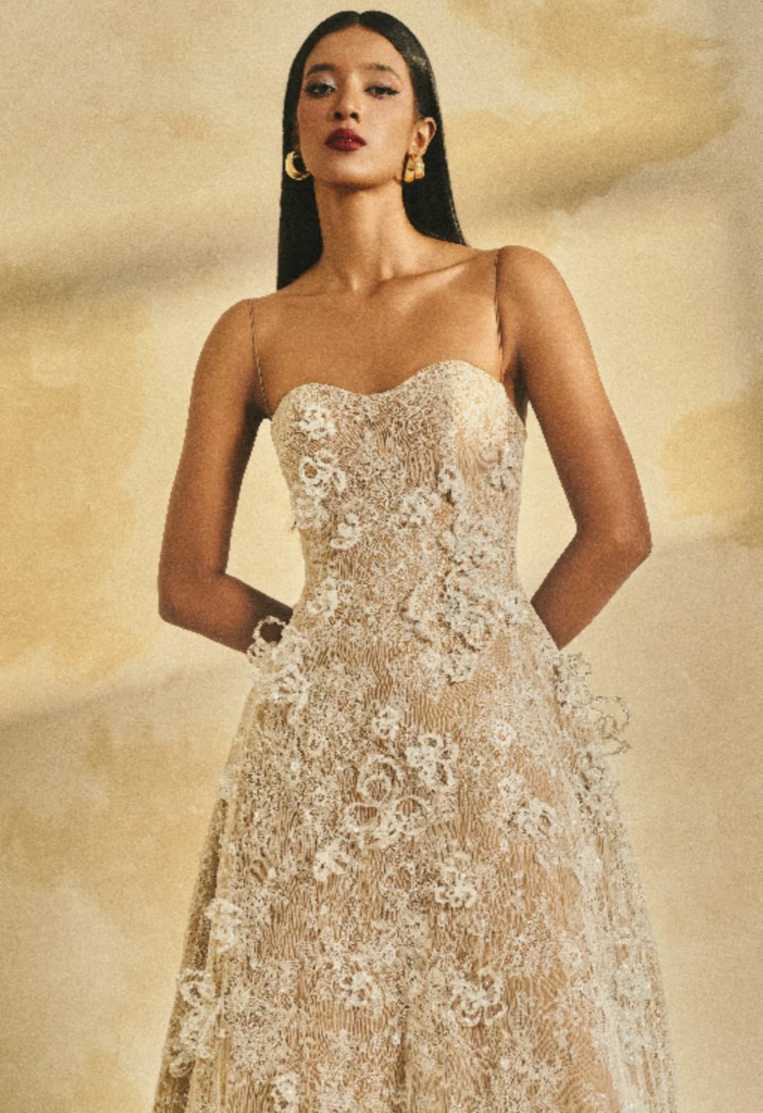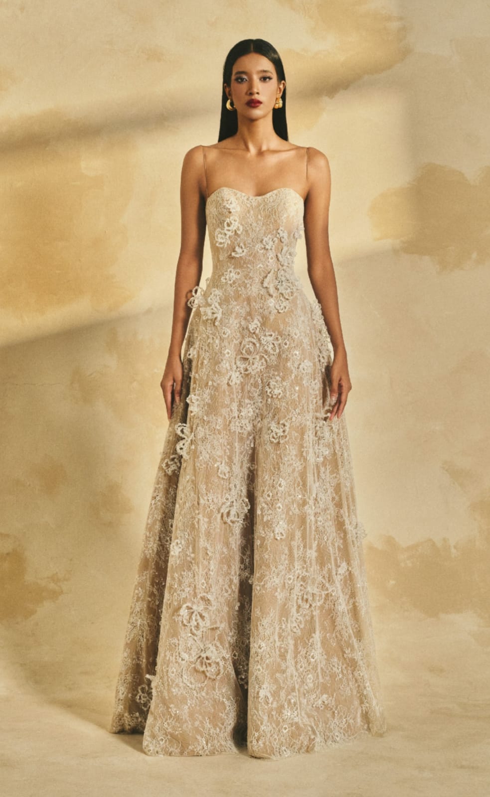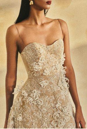 Glitter Lace A-line maxi dress with delicate shoulder straps and a softly contoured neckline0