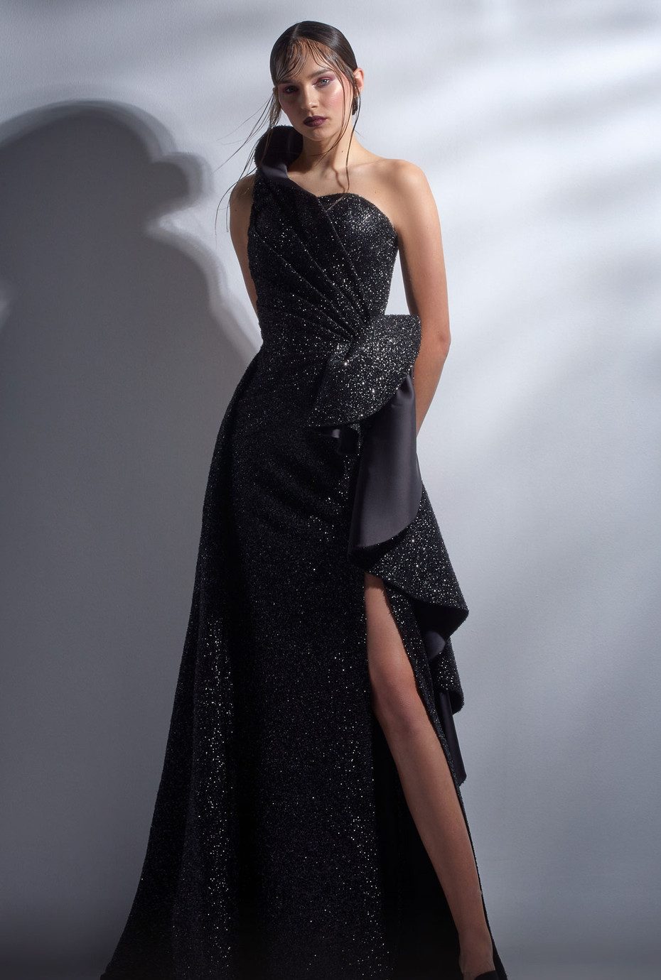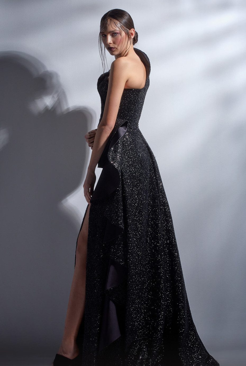 This glamorous gown features a chic one-shoulder design and beautiful cascading ruffles, making it the perfect choice for any special occasion.