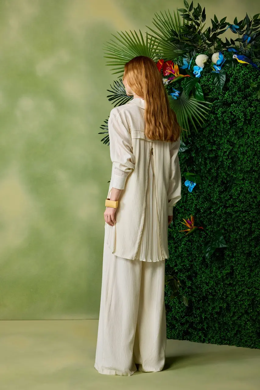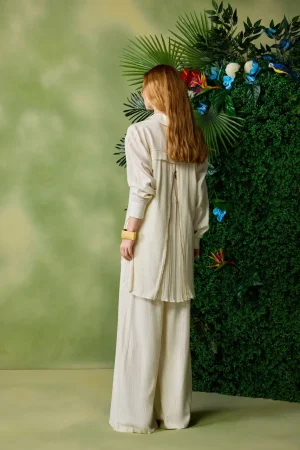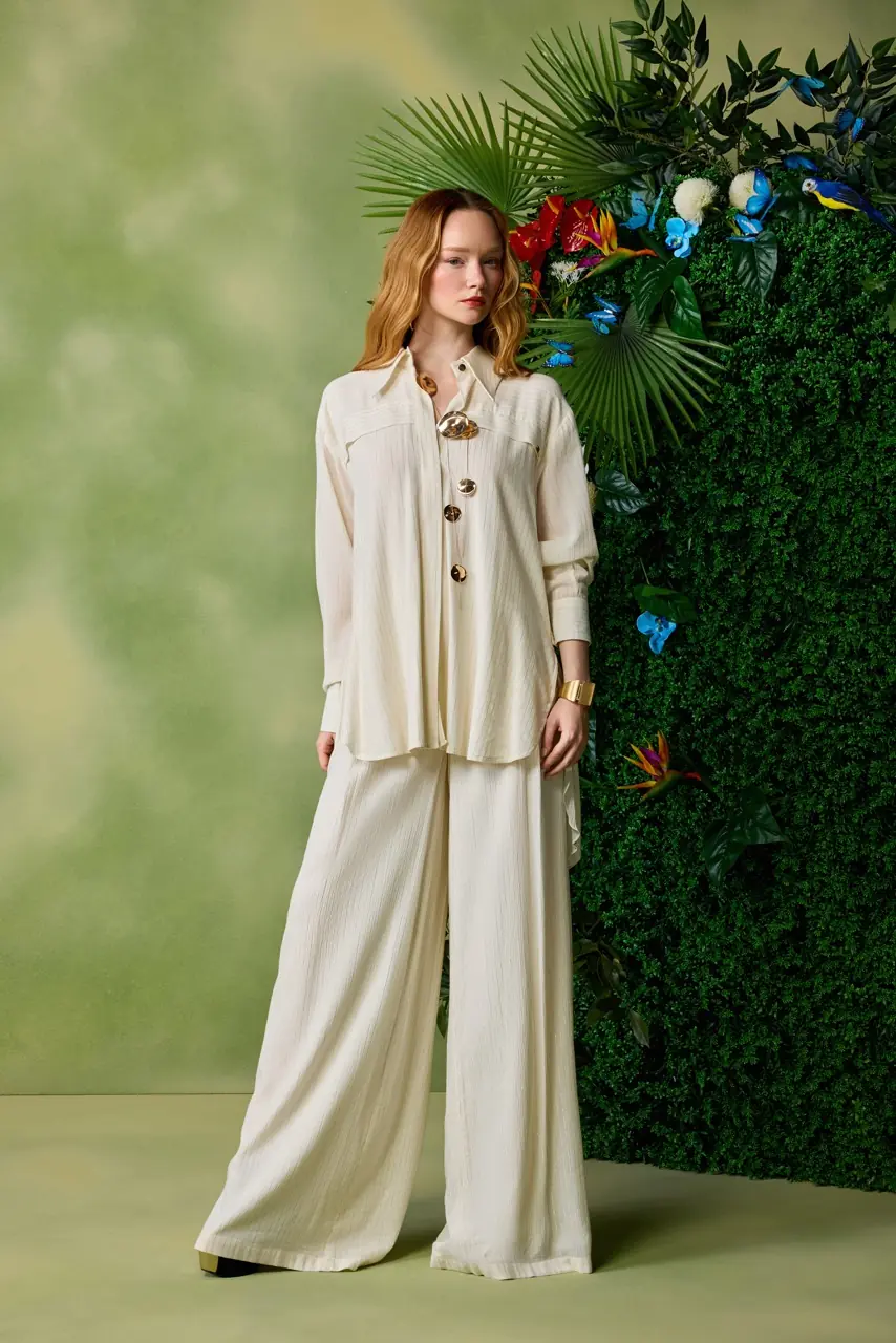 Off-white wide-leg trouser.