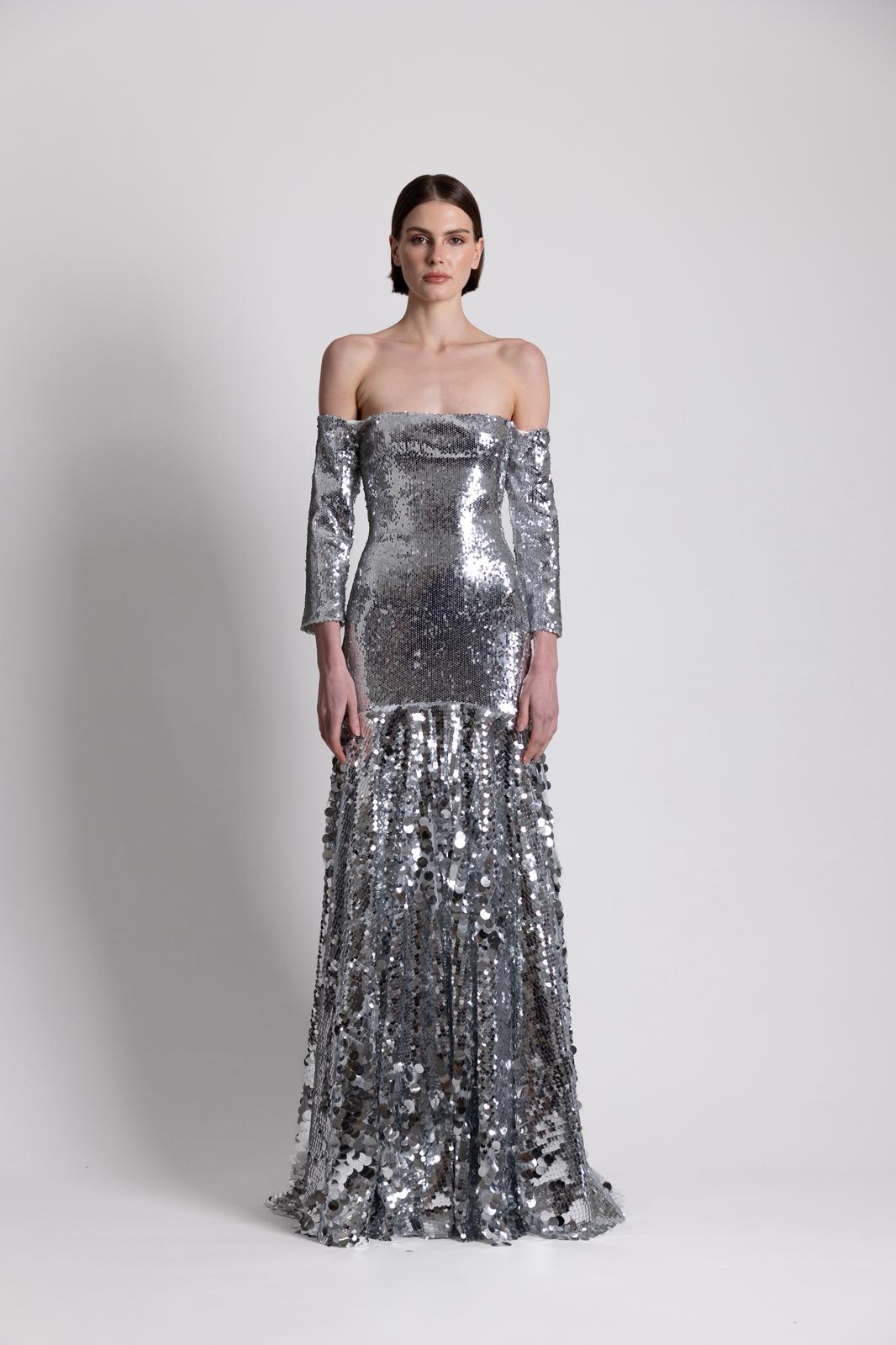 A silver sequins sparkling design.