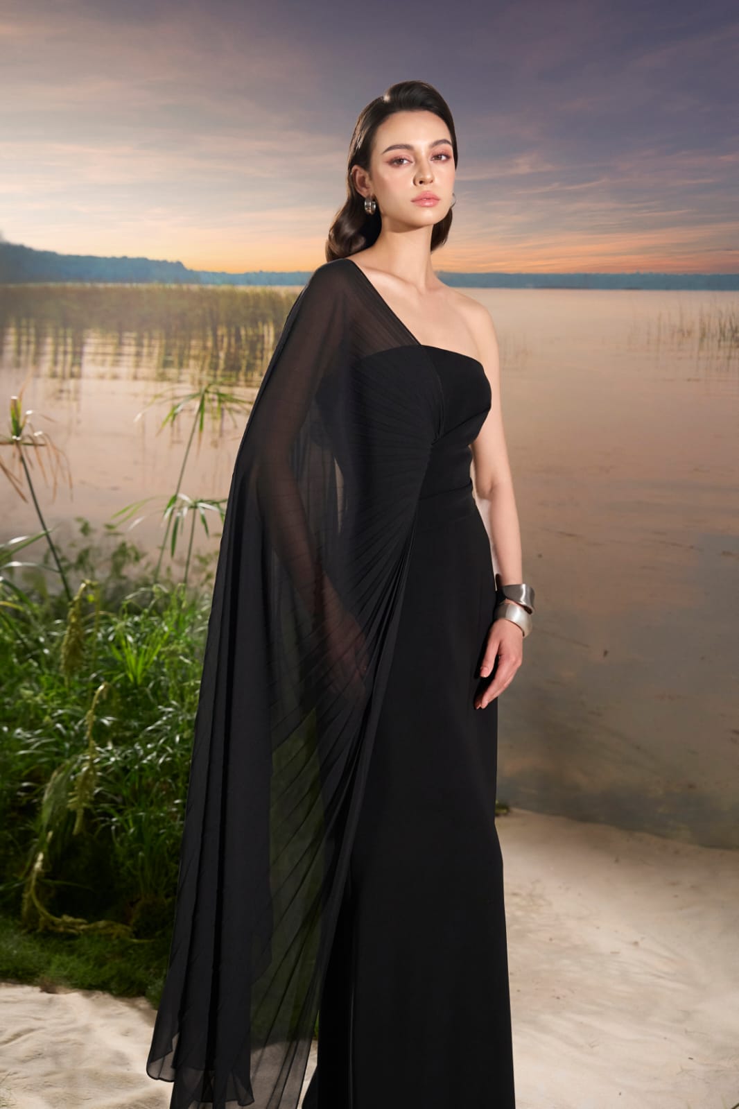 This black one-shoulder dress appears to be the “Winged Gown” .