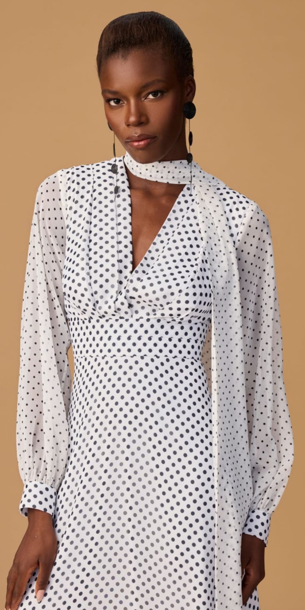 Polka dot v-neck dress.
