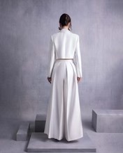 Elevate your style with wide-leg piqué pants crafted for modern elegance and comfort. The high-waisted silhouette is complemented by intricate pleated front detailing, offering a refined yet fashion-forward aesthetic. Designed with flowing, structured lines, these pants pair beautifully with tailored jackets or sleek tops, making them a versatile choice for formal events or stylish everyday wear.