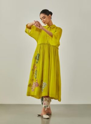Lime dress made of silk/cotton blend
